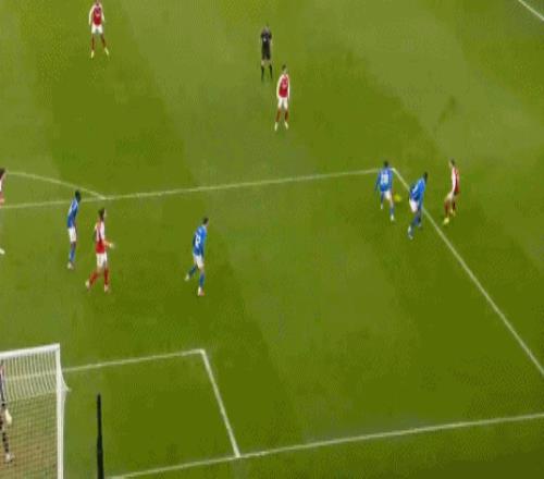 阿森納此役踢得并不流暢,幾乎被對(duì)手率先破門。比賽的第8分鐘,拉亞出擊脫手,布羅比推射空門被哈弗茨擋出。