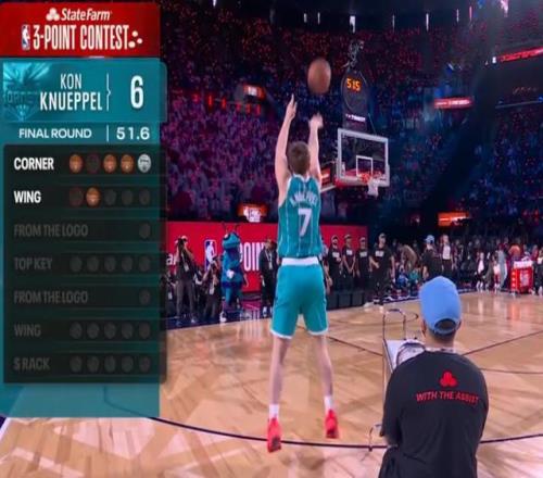 預賽第一場,康神克努佩爾第一個出場就投出27分基本鎖定了一個決賽的名額。康神三分大賽的表現依然符合他常規賽的表現,就兩個字,穩定。出手就有,完全不怯場。