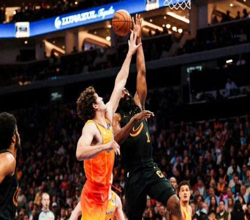 值得一提的是,雙方本場均為背靠背作戰。黃蜂上一場剛剛惜敗火箭,今天卻依然保持了極高的競技狀態,全場轟出56記三分出手,命中20球,延續了典型的“魔球”風格,他們大量依賴外線投射,一旦手感在線,便能瞬間改變比賽走勢。騎士則在外線出手21次命中10球,效率更高,但面對黃蜂這種極端投射打法,防守端天然處于被動。無論哪支球隊遇到魔球體系,都很難完全限制對手,只能通過干擾、輪轉和體能消耗來盡量降低命中率。克尼佩爾成為騎士防線的最大難題,他手感火熱,幾乎無解。好在騎士在內線擁有明顯優勢:盡管莫布里因背靠背缺陣,但阿倫依然扛起單塔重任,在禁區翻江倒海,多次完成強硬終結與二次進攻,首節騎士便建立起10分領先優勢。