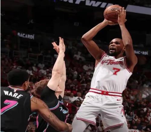 我們先來簡單回顧一下比賽過程:一上來謝潑德延續良好手感連中三分帶隊打出14-4的開局,短暫調整后,熱火抓住史密斯缺陣火箭內線護框不足的問題,攻防兩端抓住申京這個點打,連中3記三分迅速反超比分,而后熱火長時間占據場上主動,第二節期間熱火轟出19-2的進攻高潮取得兩位數領先,關鍵時刻杜蘭特和謝潑德聯手帶隊抹平分差,半場戰罷火箭52-51反超1分進入中場休息。下半場熱火占得先機,內外開花再度占據場上主動,史密斯不在對于這支球隊的影響太大了,進攻端只有杜蘭特能穩定輸出艱難咬住比分。末節火箭情況還是沒有好轉,反倒熱火這邊持續打出經常配合維金斯反擊暴扣打2+1,幫助熱火在時間所剩無幾時拉開兩位數分差,最終火箭105-115不敵熱火,吃下恥辱一敗!