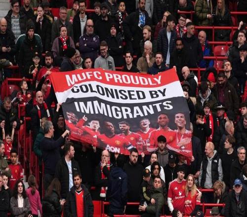 在拉特克利夫采訪后的首個曼聯主場賽事中,球迷打出醒目橫幅:“曼聯,自豪地被移民們‘殖民’”,并配上坎通納、埃弗拉、樸智星、B費、索爾斯克亞、阿馬德、卡塞米羅七位外籍球星的照片,直接回擊老板的不當言論。