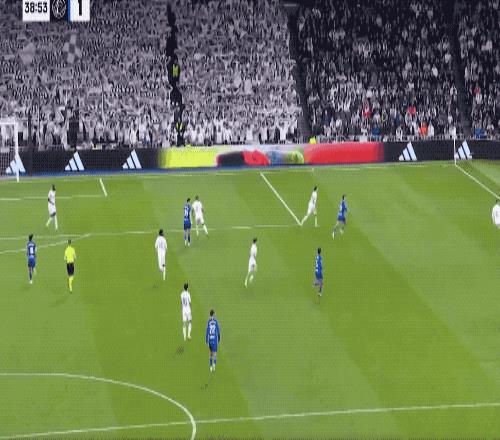 第39分鐘,赫塔費右路傳中,呂迪格解圍不遠,阿蘭巴里頭球擺渡,薩特里亞諾在禁區外迎球凌空轟出一記世界波破門,皇馬0-1落后,意外來得就是這么的突然。