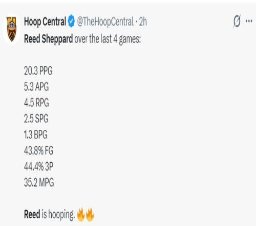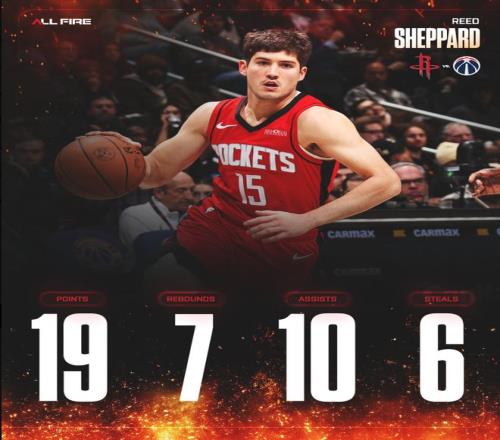 此役后謝潑德最近四場比賽,場均35.2分鐘,拿到20.3分5.3助攻4.5籃板2.5搶斷1.3蓋帽,三分命中率44.4%,他本賽季先發的9場比賽火箭7勝2負。