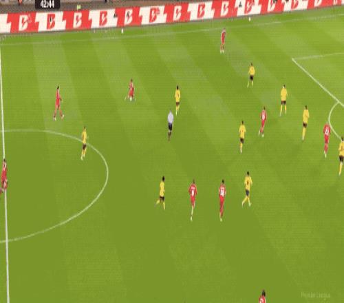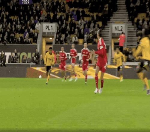 第78分鐘,狼隊打出快速反擊,阿洛克達爾在和范戴克的對抗中有一個輕微的推人動作,羅德里戈·戈麥斯破門得分。