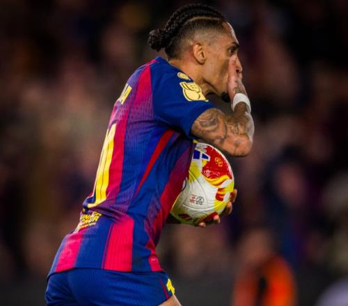 半場結(jié)束前,佩德里在禁區(qū)內(nèi)被放倒,裁判果斷判罰點球。拉菲尼亞操刀,輕松騙過穆索,弗里克實現(xiàn)了半場追回兩球的目標。