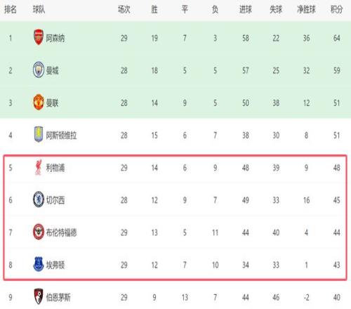 本賽季,英超9隊參加歐戰賽事,結果全部晉級16強,這也意味著,英超很可能再次憑借歐戰積分優勢,拿到5個歐冠名額。屆時排名第五的球隊,將有機會獲得歐冠席位,英超爭四也將變成爭五。