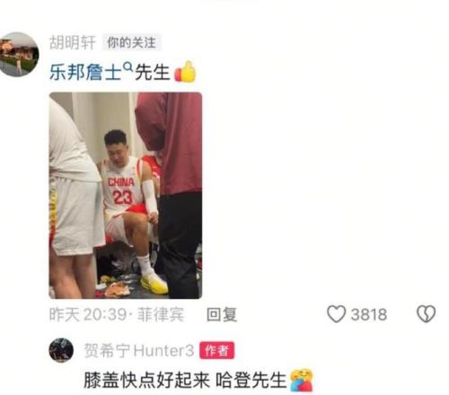 在世預賽的比賽結束之后,胡明軒第一時間在賀希寧的社交平臺留言,點贊好兄弟的表現,而賀希寧也回應談到了小胡的傷病情況。大概的意思就是說希望小胡的膝蓋傷病趕緊好起來。從好兄弟的這番話我們才知道,原來胡明軒的他的膝蓋傷病一直都沒有痊愈。雖然說此前全運會的比賽,就已經隱隱透露出類似的一些問題,但是這幾個月時間以來,胡明軒時不時也在國內打比賽,這一次也跟隨國家隊去到日本,去到菲律賓。所以大家都覺得胡明軒的身體恢復已經差不多了,只是為了保險沒有上場比賽而已,沒想到現在還是有挺嚴重的問題。