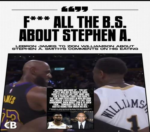 北京時間3月4日,湖人110-101主場擊敗鵜鶘。詹姆斯得到21分7籃板7助攻,錫安得到24分4籃板。賽后,兩人擁抱告別前,詹姆斯對錫安說了一句話曝光,他對錫安說:“去他的斯蒂芬-A(史密斯)的 那些鬼話。”這句話針對的是球評A-史密斯之前對錫安的一番評論。