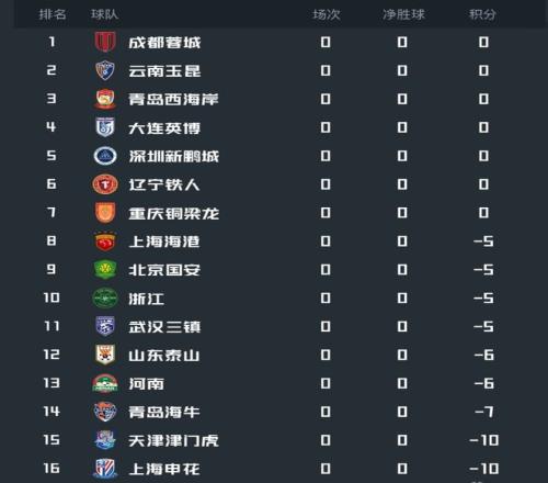 這是一張前所未有的中超積分榜,一場比賽還沒有打,山東泰山就以-6分排在積分榜第12位。今年1月底,有九支中超球隊被中國足協處罰,扣除了相應的積分,山東泰山從-6分起步,從首輪開始,就肩負著“填坑”的重任。