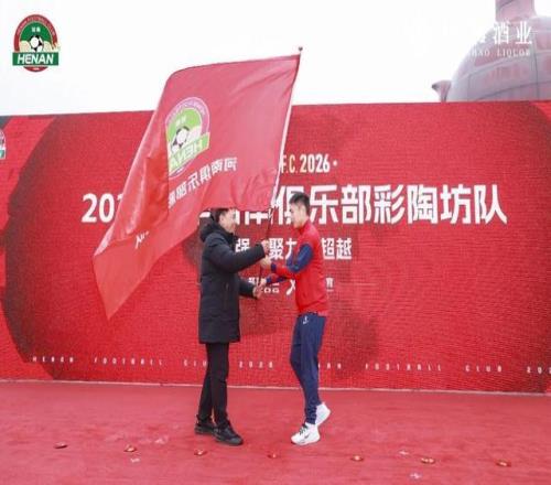 現場,河南足球隊與仰韶酒業正式簽約,球隊將以“河南俱樂部彩陶坊隊”之名征戰賽場。隨著河南隊隊長王上源接過隊旗奮力揮舞,正式宣告河南彩陶坊隊開啟2026賽季中超新征程。