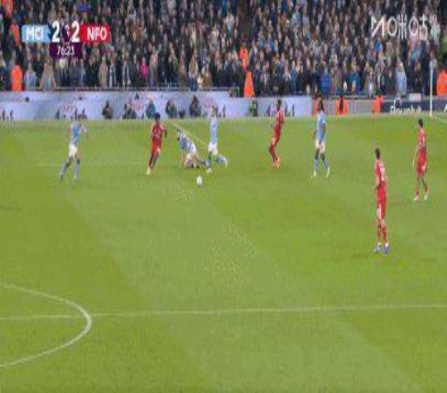 第76分鐘,艾納搶斷羅德里,森林前場轉換,埃利奧特·安德森經過與赫德森-奧多伊的撞墻配合后,禁區外兜射破門,森林2比2。