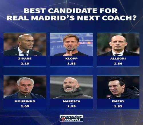 德轉列皇馬新帥6位潛在候選人:穆里尼奧、齊達內、克洛普在列 Instagram 2026-03-05 20:08:20 體育播報3月5日宣 德轉盤點了皇馬下一任主帥潛在候選人的執教場均積分,并發問:“誰是皇馬新帥最佳人選?”齊達內-2.10分克洛普-1.88分阿萊格里-1.86分穆里尼奧-2.05分馬雷斯卡-1.99分埃梅里-1.82分 足球免費觀看_皇家馬德里免費觀看_穆里尼奧免費觀看_足球高清在線_皇家馬德里高清在線_穆里尼奧高清在線 足球 皇家馬德里 穆里尼奧 克洛普 西甲 上一篇: 阿斯:皇馬全力支持羅德里戈回歸,續約的可能性并未排除 下一篇: 馬卡:前馬略卡球員喬迪莫雷因病流落街頭,獲俱樂部援助并送醫