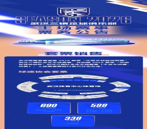 武漢三鎮官方寫道:2026 賽季中超聯賽戰鼓即將擂響,武漢三鎮足球俱樂部正式開啟新賽季主場票務銷售通道,全賽季套票正在進行發售。為回饋廣大球迷的支持,我們對新賽季主場套票及單場票價格進行了調整,且有多種套票方案任您選擇,歡迎大家選購。
