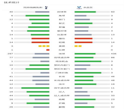 北京時(shí)間3月6日英格蘭足球頂級(jí)聯(lián)賽 聯(lián)賽 第29輪,托特納姆熱刺主場(chǎng)對(duì)陣水晶宮。上半場(chǎng),阿奇-格雷助攻索蘭克破門。范德芬拉倒薩爾送點(diǎn)并且被直紅罰下,薩爾罰入點(diǎn)球扳平比分。沃頓送出兩次助攻,拉森和薩爾相繼建功。下半場(chǎng),兩隊(duì)均無(wú)建樹(shù)。全場(chǎng)比賽結(jié)束,熱刺1-3不敵水晶宮,遭遇各項(xiàng)賽事的5連敗和英超連續(xù)11輪不勝。