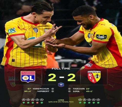 常規時間結束,雙方戰成平局,比賽不得不進入殘酷的點球大戰。前三輪雙方全部命中,比分始終膠著。但在第四輪,里昂后衛尼亞凱特的點球被門將神勇撲出,而朗斯的桑加雷則穩穩罰進,局勢瞬間逆轉。