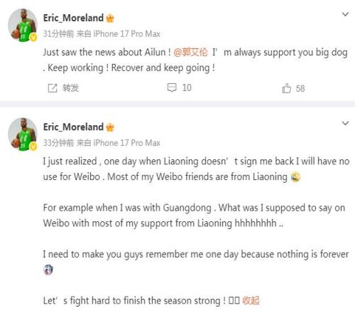 莫蘭德還繼續(xù)談到自己本賽季重返遼寧男籃效力的感受:“我突然意識到,如果有一天遼寧男籃不再與我續(xù)約,我的微博可能就沒什么用。我的大多數(shù)微博好友都來自遼寧,比如我在廣東男籃效力時,面對大部分支持我的遼寧球迷,我在微博上該說什么?我需要讓你們記住我,因為沒有什么是永恒的。讓我們一起努力,爭取在賽季結(jié)束時取得好成績!”