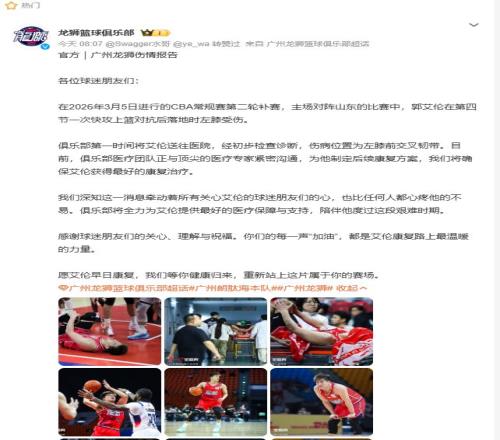 3月6日,龍獅籃球俱樂部發(fā)布了郭艾倫傷情報(bào)告,全文如下: