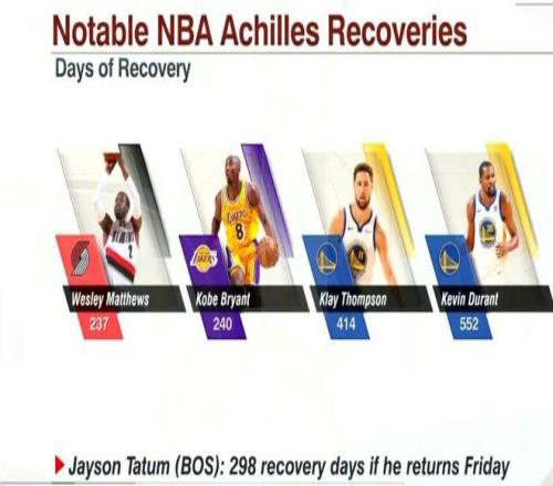 也就是說,盡管醫學在發展,但對跟腱撕裂的恢復預期卻在延長,說明從前的激進復出并不利于傷病的完全恢復。