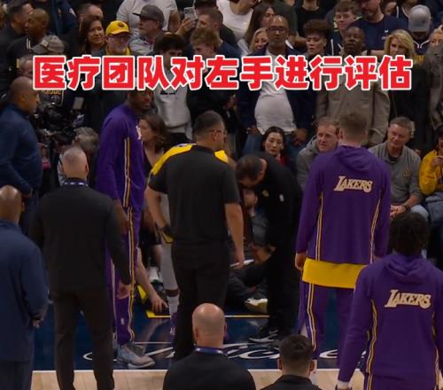3、場邊隊醫迅速進入并對詹姆斯的左肘進行現場初步檢查(觸診、活動度測試),在返回替補席后還對他的手肘進行了握力測試。