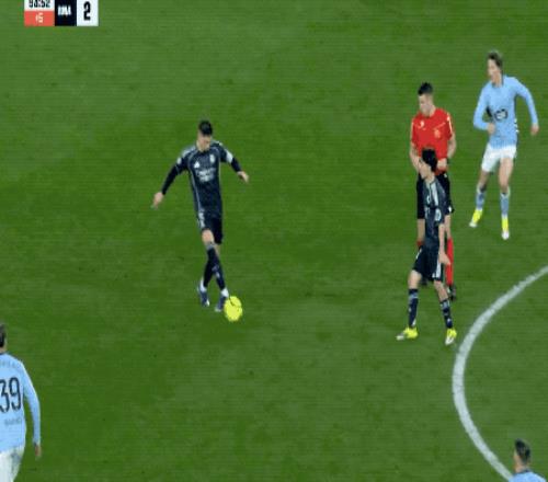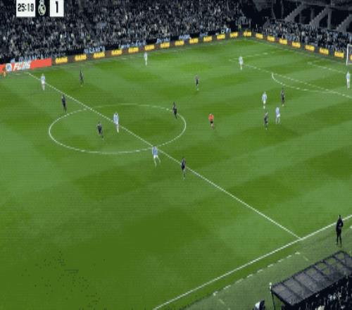 第11分鐘,皇馬開出戰(zhàn)術(shù)角球,居萊爾倒三角傳中,瓊阿梅尼無人盯防,推射擊中立柱,彈進(jìn)球門。
