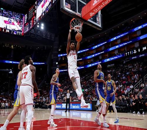 本場比賽中,看起來火箭的先發控衛阿門-湯普森(Amen Thompson)打出了不錯的數據,實際上他的表現是非常一般的。阿門全場出場43分30秒,投籃15中8,三分線外2中1,罰球2中1,得到了18分10籃板5助攻4搶斷的兩雙數據,其中還包括了7個前場籃板,還有1次失誤和1次犯規,正負值為+6。阿門在前后場籃板爭搶以及防守方面的表現都是值得肯定的,他搶到了大量的前后場籃板,他也有著很高的防守侵略性,他也利用轉換進攻拿到了不少分數。然而另一方面,阿門作為一名控衛,沒有基本的傳球和組織能力,而且他的技術非常粗糙,并不能在進攻端完成稍微復雜一些的得分,他在進攻端的功能其實是非常單一的,完完全全就是一個輔助型球員的樣子,他在進攻端對于球隊空間的負面影響也是肉眼可見的。