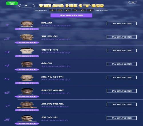 往期月度MVP得主