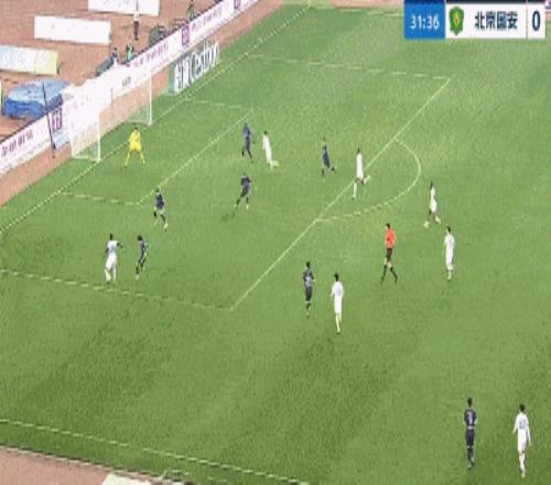 第45分鐘,王剛右路底線位置無人盯防送出傳中,法比奧禁區內頭槌破門,國安1-0領先三鎮。