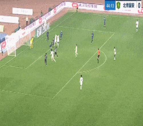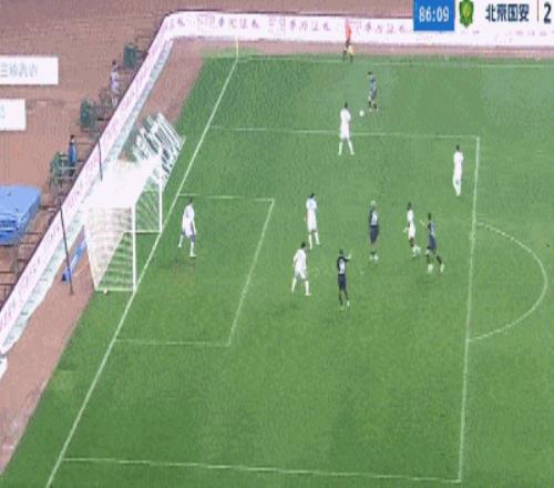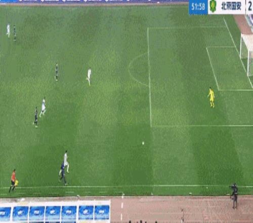 第51分鐘,方鏡淇超巨失誤,他接隊友回傳猶豫,隨后被王剛斷球后撲倒對方,張玉寧得球吊空門得手,國安2-0領先三鎮。