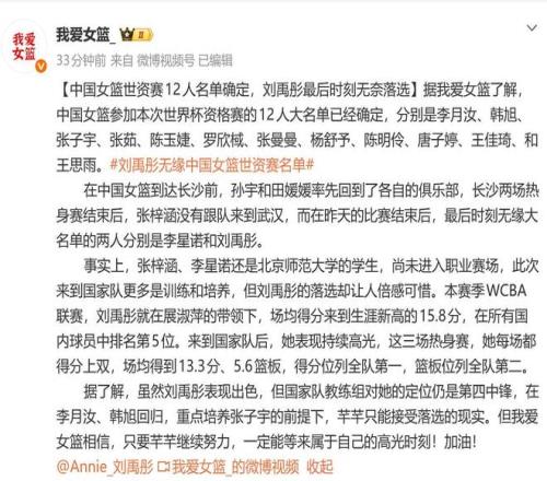 不少球迷為劉禹彤落后12人名單感到可惜和不平。在大多數球迷看來,現階段劉禹彤的能力顯然比入選12人名單的張子宇要強,實用性也比后者大。有人總認為張子宇以后還會提升,其實她已提升不了多少了,也不要說她現在只是19歲,當年鄭海霞17歲就打世界大賽了。張子宇進入國家隊也有兩年了,你看她有進步嗎?可以說一點進步也沒有,仍然是像過去那樣站著接球,站著雙手放籃(而不是投籃)什么轉身啊,跑動接球啊,背打啊,運球啊,統統沒有。
