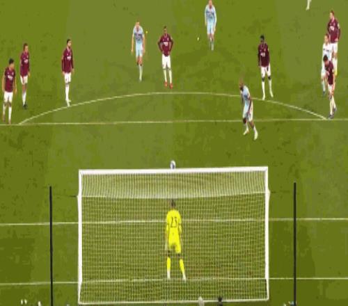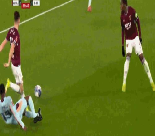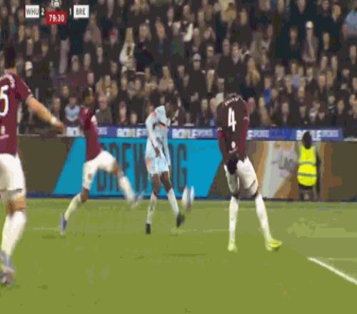 第34分鐘,卡約德絆倒特拉奧雷送點,鮑恩主罰命中,西漢姆聯2-1