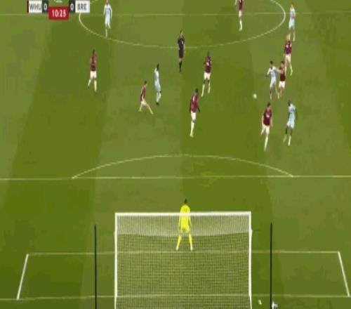 第82分鐘,卡約德造點,蒂亞戈主罰命中,布倫特福德2-2