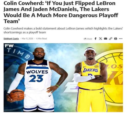 詹姆斯缺陣期間,湖人隊的進攻效率有所提升,防守執行力也有所提高。在湖人120-106大勝森林狼的比賽后,NBA名嘴科林·考赫德公開表示,如果湖人隊用杰登·麥克丹尼爾斯代替勒布朗·詹姆斯,湖人更有奪冠威脅性。現在詹姆斯在湖人的價值甚至不足以與一位角色球員媲美……