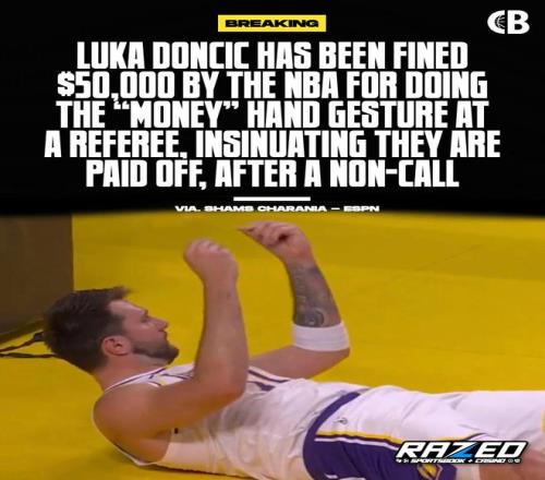 這一舉動最初并沒有被場上的裁判注意到,賽后聯盟追加了對東契奇的處罰,罰款5萬美元!