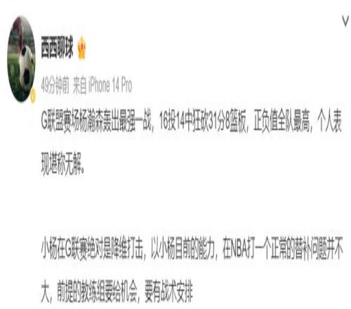 這場比賽后不少的美國球迷為楊瀚森點贊,有人盛贊他是中國約基奇,也有人盛贊此役楊瀚森才是最佳球員。