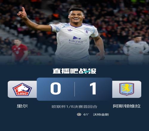 體育播報3月13日宣 北京時間3月13日凌晨1:45,歐聯杯1/8決賽首回合,里爾坐鎮皮埃爾-莫魯瓦球場迎戰維拉。上半場兩隊都未能制造太好的機會,暫時0-0戰平;下半場沃特金斯頭球破門,隨后錯失一次單刀球機會,最終維拉客場1-0戰勝里爾,占據晉級先機。兩隊次回合交手將是在北京時間3月20日凌晨4:00,維拉在主場迎戰里爾。