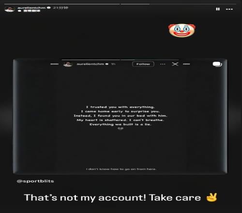體育播報03月14日宣 今日凌晨X平臺有一位外網博主發布了一張疑似為(經證實并非)瓊阿梅尼社媒快拍的截圖,內容為瓊阿梅尼表示控訴女友出軌,自己將其捉奸在床。