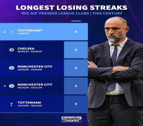 然而,圖多爾上任后的戰績堪稱災難、截至目前,他已經率隊遭遇四連敗,球隊在英超聯賽中已經連續11輪不勝。積分榜上,熱刺排名第16位,僅比降級區高出1分。更令人擔憂的是,球隊在場上展現出的斗志和戰術執行力,完全看不出是一支為保級而戰的球隊。