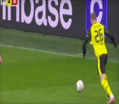 第13分鐘,阿德耶米射門打在達門臉上入網(wǎng),多特1-0領(lǐng)先