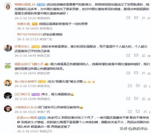 隨后,媒體人“我愛女籃”發文點評:總要有人說,總要有人做,楊力維這番言論無疑是有風險的,因為可能會動一些人的蛋糕。但我愛女籃認為,楊力維這是真正希望中國女籃越來越好才仗義執言。縱觀全球體壇,職業化程度較高的足球和籃球,運動員都是在高水平的俱樂部比賽和提高,歐冠和NBA(WNBA)的商業價值早就超越大部分國家隊比賽。每逢國際比賽日,球員再從俱樂部征召到國家隊,但最長集訓時間不超過兩周,而我們總是與國際潮流背道而馳。