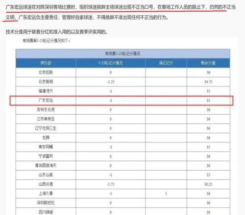 根據CBA公司公布的最新消息,CBA公司對廣東隊進行了追加處罰,扣除廣東隊本賽季技術分1分。原因就是廣東隊與深圳隊的比賽中,球隊組織人員對深圳隊主場球員說了不正當的口號,雖然,當時有工作人員前來阻止,但是,依然出現不文明的話語。因此,CBA公司扣除廣東隊技術分1分。