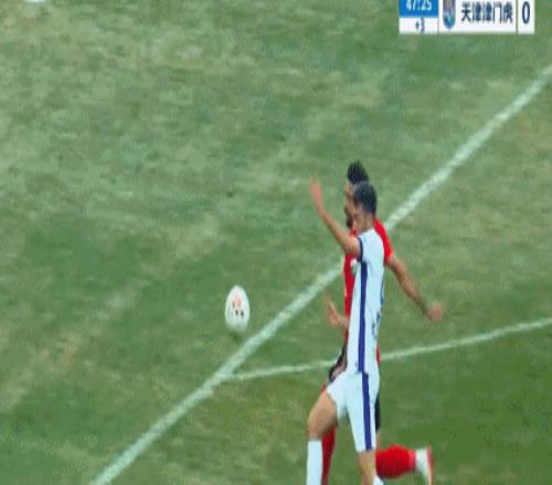半場補時第3分鐘,基萊斯禁區(qū)內(nèi)挑傳擊中費利佩手臂,津門虎投訴對手手球,但主裁判拒絕判罰點球。