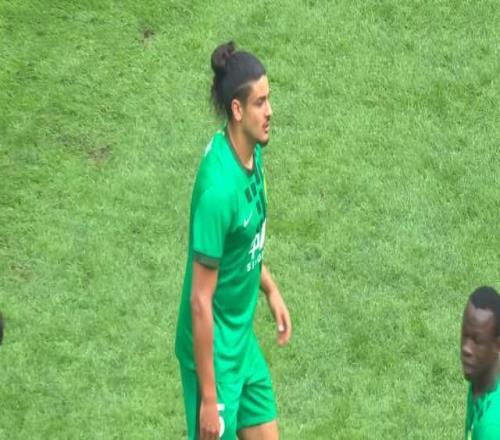申花本場比賽的三前鋒反擊勢頭很猛,孔特在中場形成了有效的攔截。比賽第23分鐘,恩科洛洛邊路傳中打穿申花防線,張玉寧后點無人防守,頭球打破了僵局,國安主場1-0領先,張玉寧3場比賽打進3球。這個進球恩科洛洛的傳中落點精準,申花后衛漏人非常嚴重。拉唐+米內羅各自為戰,沒有配合和接應,陷入一對多的包圍圈。