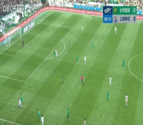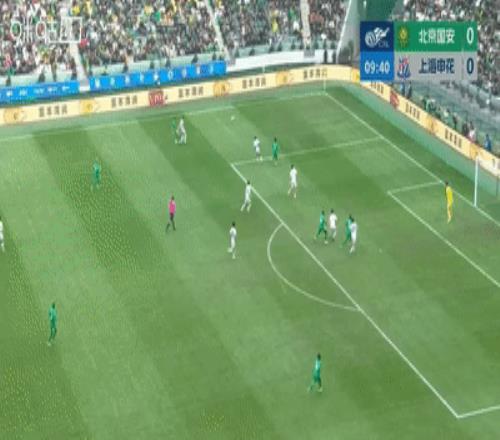 開場9分鐘,申花外援米內羅從左側強行突入禁區,小角度推射,皮球擊中立柱彈出底線。