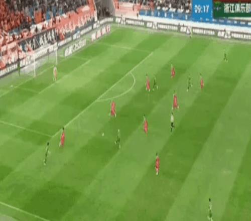 進入到下半場,浙江隊開始全力反撲。第54分鐘,米特里策撕開海牛隊防線,然后傳給王鈺棟,后者輕松破門。1-1!