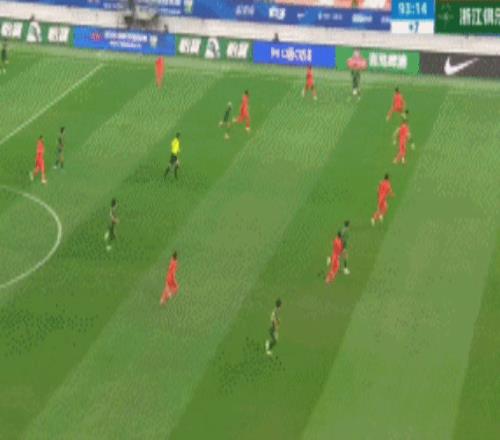 開場后,浙江隊主動發動進攻,王鈺棟在邊路的狀態很好,他的傳中質量很高,皮球踢出的弧線很漂亮。