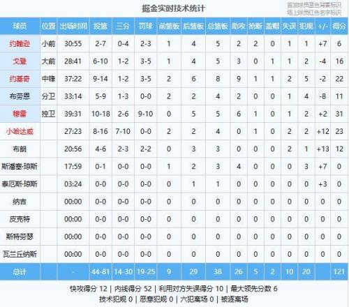 穆雷31分5板6助、小哈達威23分4板、約基奇22分8板9助、戈登16分5板3助、布朗12分3板、布勞恩11分4板2助、約翰遜6分5板2助2斷、斯潘塞·瓊斯3板4助