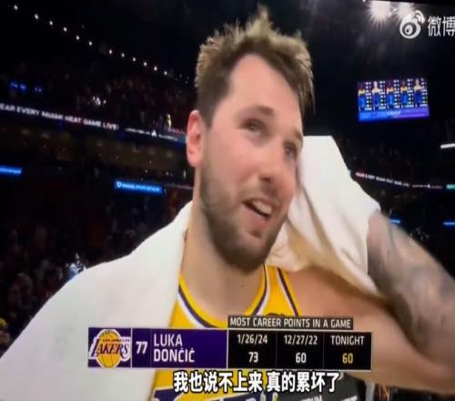 3月20日消息,3月20日結束的NBA常規賽中,湖人背靠背以134-126擊敗熱火,豪取8連勝。本場比賽,東契奇爆砍60分7籃板,賽后他表示,自己累壞了,但是這場勝利展現了湖人的強大韌性。