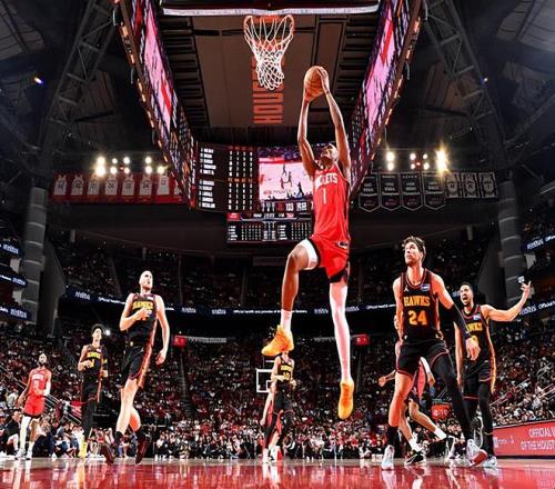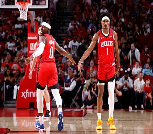 本場比賽中,火箭的先發后場新星阿門-湯普森(Amen Thompson)的表現還是比較穩定的。阿門全場出場33分57秒,投籃10中5,三分線外4中4,得到了14分7籃板4助攻1搶斷的數據,還有1次失誤和2次犯規,正負值為+13。阿門在進攻端還是展現出了不俗的沖擊力和籃下終結能力,也是得到了一些分數,而且他在球權減少的情況下也算是展現出了一定的傳球能力和組織能力。阿門在防守端的表現也算是中規中矩,同樣是能夠起到一些效果的。沒有擔任控衛的阿門,在球權方面出現了進一步減少的阿門,反而在場上起到了很好的效果,他也是很好地扮演了自己的角色,在攻防兩端都起到了作用,并且給球隊的勝利帶來了大量的正面影響。