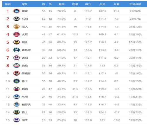 今日比賽后快船、開拓者排名互換,其他西部球隊排名不變。