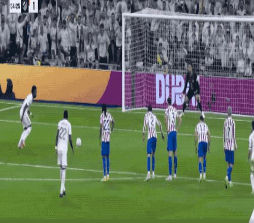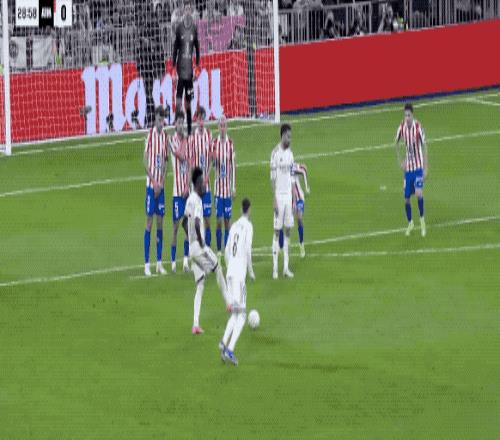半場結束,皇馬在射門次數10-5的情況下,主場0-1落后于馬競。